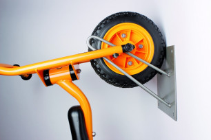Avec ce rack mural, les tricycles et les scooters peuvent être accrochés au mur et rangés de manière peu encombrante.